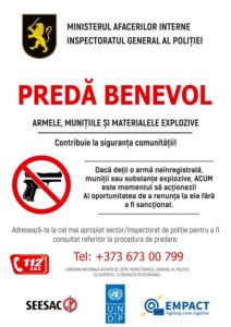 Oamenii legii anunță că la cel mai apropiat Sector sau Inspectorat de poliție, ori prin intermediul numărului scurt 112, orice cetățean poate afla toate dtaliile necesare despre modalitatea de predare a armelor, a munițiilor și materialelor explozive.