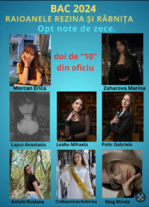 - 1 elevă din Liceul Teoretic ,,Evrica” din Râbnița cu nota 10 din oficiu: